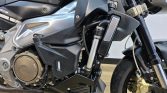 This particular Tuono 1000 is further enhanced by a selection of high-quality upgrades that significantly boost both its performance and aesthetics. It announces its presence with an aggressive, throaty exhaust note from a Leovince Twin Exhaust, while adjustable sports levers allow you to fine-tune the ergonomics for a tailored feel. A tinted screen offers improved wind protection and a sharper look, and crucial rider information is clearly presented on a semi digital screen. The bike’s sleek, single-seater aesthetic is perfected by a rear seat cowling and a neat tail tidy that cleans up the rear end.