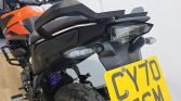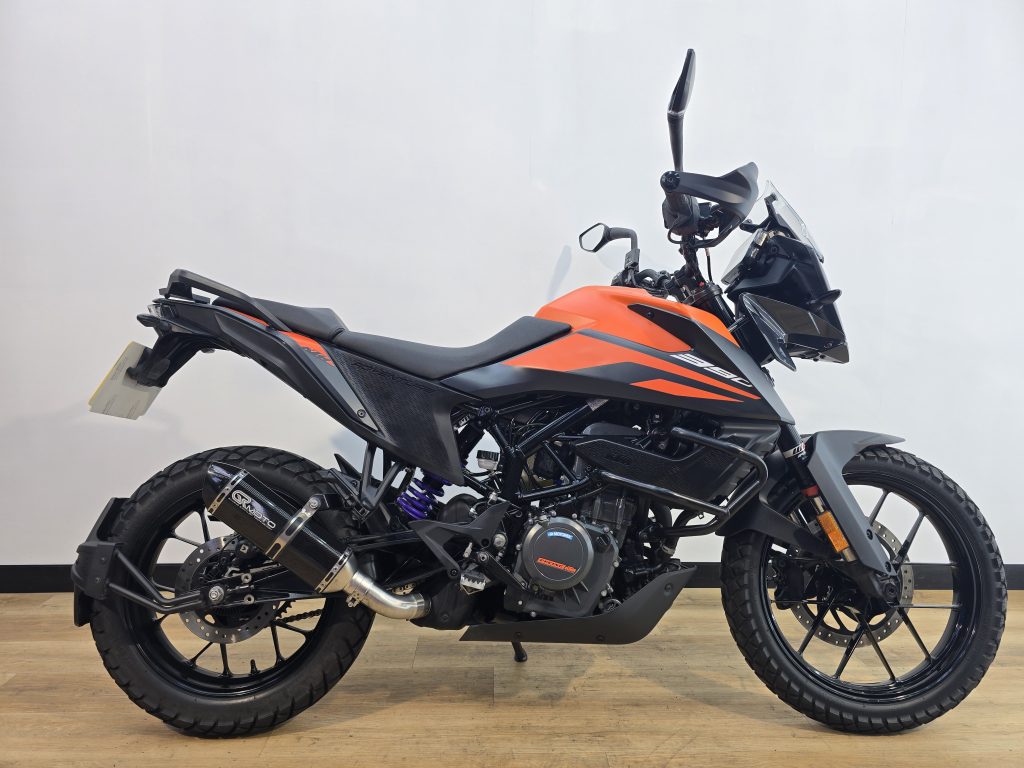 This particular 390 Adventure is well-equipped for its intended use and features a number of key upgrades. Safety and control are assured by ABS (Anti-lock Braking System). For protection on rough terrain, it includes robust engine bars and a Givi hugger to keep the rear cleaner. The bike benefits from high-quality suspension components, featuring WP Apex front forks and WP Apex rear suspension, ensuring excellent handling and ride comfort both on and off-road. The riding experience is enhanced by an aggressive-sounding GR Moto exhaust, while a grab handle adds passenger comfort and utility. All ride information is clearly presented on a modern full digital display.