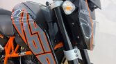 This particular Duke stands out with a host of tasteful modifications that enhance its aggressive “Streetface” aesthetic and performance. It features a Black Widow sports exhaust that provides a much-improved soundtrack and weight savings, complemented by a sleek tail tidy and a modern LED tail light for a sharper rear profile. For that solo-rider look, it comes with a rear seat cowling, while the addition of hand guards provides extra protection and a touch of rugged style. All your vital information is delivered via a clear semi-digital display.