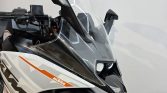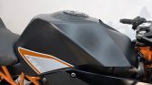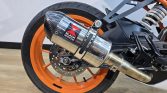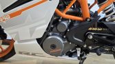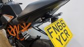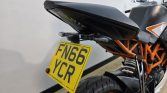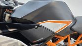 This particular RC390 comes with several choice upgrades that enhance its appeal. It features a clear screen for better visibility and aerodynamics, and is equipped with a clean full digital display providing all essential information. The rear end has been tidied up with a tail tidy, and it includes paddock stand bobbins for easy maintenance. Adding to its performance and sound, it features a fantastic Black Widow sports exhaust. Crucially, it provides modern safety with ABS (Anti-lock Braking System).