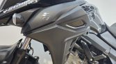 This particular V-Strom comes exceptionally well-equipped with practical features that greatly enhance its touring potential. It includes a sturdy grab handle and a useful luggage rack ready for panniers or a top box. The addition of a centre stand makes chain maintenance and puncture repairs a breeze. For rider comfort, it features both a clear main screen and a helpful screen extender for customizable wind protection, along with a handy charging port to keep your devices powered on long journeys. Finally, folding mirrors offer protection when navigating tight spaces or parking.