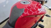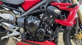 This particular Street Triple comes comprehensively equipped with high-value accessories that enhance both its protection and appeal. It boasts exceptional sound and reduced weight thanks to the twin Arrow exhaust. For enhanced protection, it features a radiator guard, frame crash bungs, and engine crash bungs. The rider benefits from all-weather comfort provided by heated grips and an improved aesthetic from a tinted flyscreen. Further practical and stylistic upgrades include adjustable sports levers for tailored ergonomics, a protective tank pad, a clean tail tidy, and a clear semi digital display.