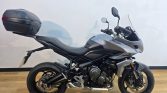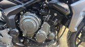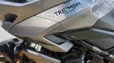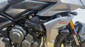 This particular Tiger 660 Sport is exceptionally well-equipped with premium, practical accessories that make it ready for any journey. For touring and commuting, it features a genuine top box for secure storage and a sturdy grab handle for passenger comfort. It is fully prepared for all-weather riding with hand guards, high-visibility fog lights, and essential heated grips to keep you comfortable year-round. The rider also benefits from a clear screen for excellent wind protection and a modern, high-tech full digital display that keeps all vital information crystal clear.